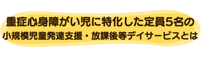 すこやかステップは「小規模(定員5名)」「重症心身障がい児に特化」の児童発達支援・放課後等デイサービスです。